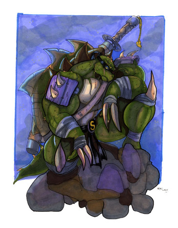 I also love how they designed him as a hulking towering figure next to Leatherhead. Although, I find it kinda ironic that he named himself "Slash", yet he uses a morning star. XD