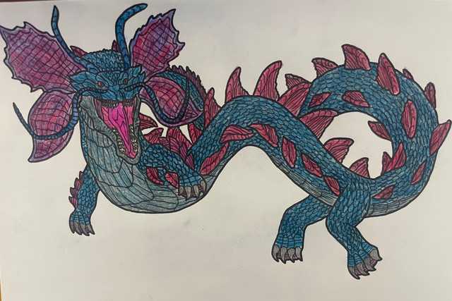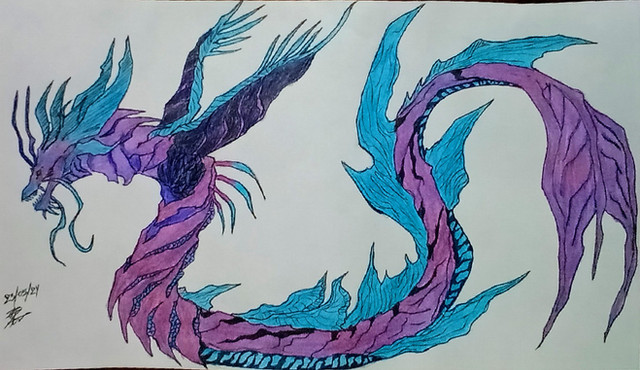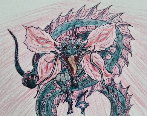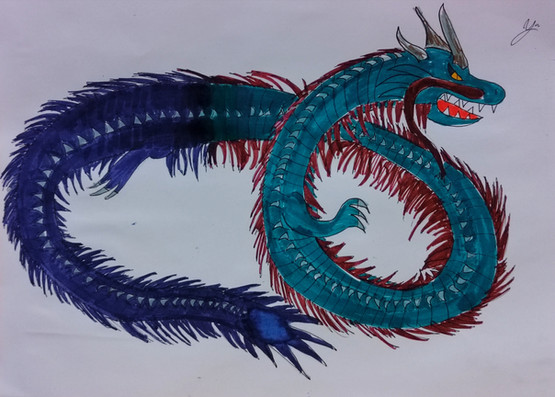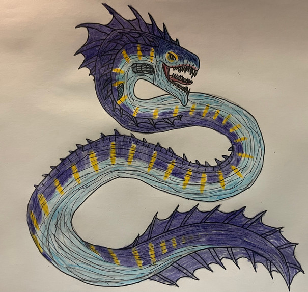 Info: Manda is an ancient serpentine titan that has ruled the seas for millions of years, and like most other titans, is a protector of the natural world. It is a gigantic sea serpent that is one of a few monsters who dominate the seas with ferocity, to the extent that Godzilla, a titan whose dominance is further enforced in the sea, can be challenged by Manda. This titan has the ability to manipulate the movement of water, constrict predator and prey like a constrictor snake, spray large water jets and deliver electric charges using its tendrils and barbed harness. In 2024, during the titanic battle and alpha call between Godzilla and Kong, Manda awoke from the seas and attacked dozens of naval vessels that entered its territory. Manda ended up battling it's distant relative, Tiamat for territory, of which the two titans were evenly matched. Godzilla was forced to intervene and stop the two titans from fighting, though eventually a group of titan traffickers whom had instigated the attack to lure all the titans in one place for extermination. Godzilla, Tiamat and Manda decided to team up and destroyed the entire fleet. As a result, Tiamat and Manda decided to share their territory in peace, as their combined efforts to defend the seas would provide a symbiosis, allowing Manda to continue his sworn obligation to defend the sunken empire of Mu, whilst allowing Tiamat to help defend in exchange for food and a home.