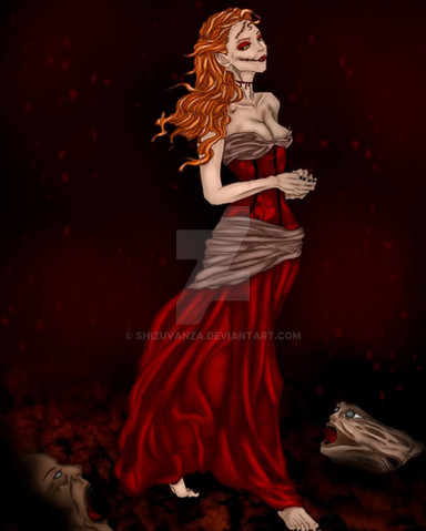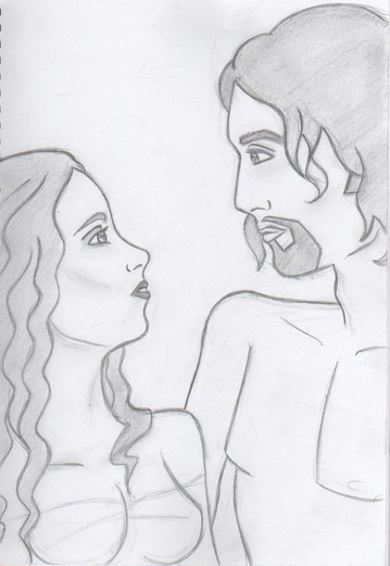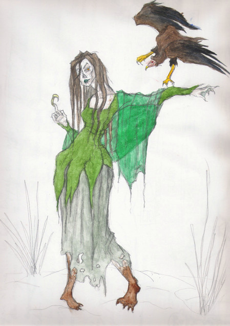 The image behind the story of the same name.In the story she wears a wolf skin, but seeing as it's based on Red Riding Hood I thought I'd draw her in the remains of a cape, to keep in with the iconography.