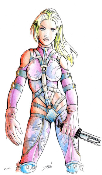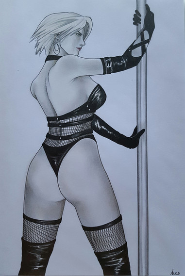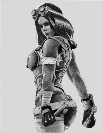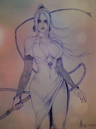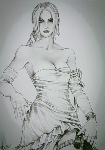 Another simple draw of Nina Williams, in her Tekken5 gold suit.Ink and some app effects.