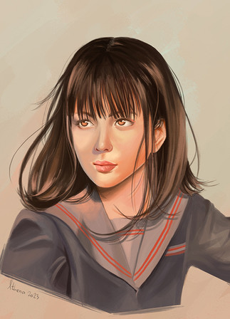 #colorful #digitalart #digitalpainting #orangeeyes #photoreference #portraitbeauty #portraitgirl #brownhairgirl