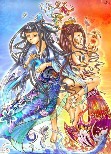This is very beautiful! I love how you show the differences between Yuna in X and X-2. The shading on this is great. You did a really great job with the foreshortening on Yuna's right (our left) gun arm. This is a beautiful work!