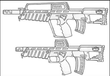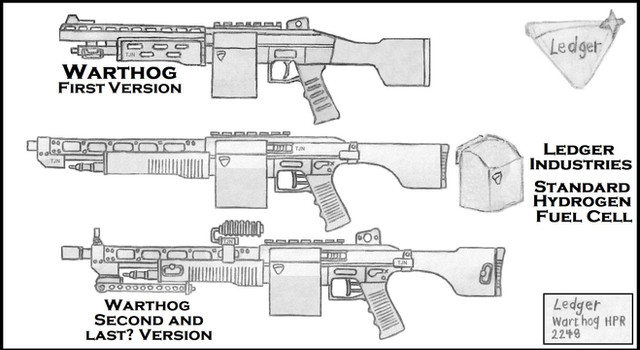 Inspired by the Fallout laser-rifle, this rifle is used by teams of scavengers in the year 2XXX,