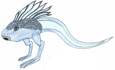 "Taddles are born without gills. They do however have lungs and carry around an air bubble that constantly replenishes itself as it surfaces. These orange colored amphibians are often found clustered in large groups and scatter when scared."