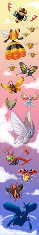 I kinda wanted to take a break from drawing humans and humanoids. So here's literally every winged Bug-type (excluding the Ultra Beasts and Scyther line) taking flight. Something I felt like doing for a while now.β¦In case people are wondering, because this isn't the Shiny variant, the sparkles are just the powders coming off of the butterfly and moth Pokemon.