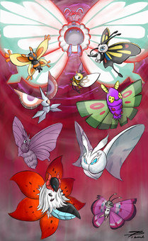 I kinda wanted to take a break from drawing humans and humaonoids. So here's literally every winged Bug-type (excluding the Ultra Beasts and Scyther line) taking flight. Something I felt like doing for a while now.Here's the Normal variant .