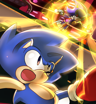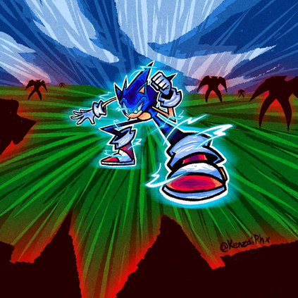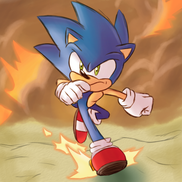 "I'VE GOT YOUR LIMIT!! RIGHT HERE!!"A recreation of a fairly well-known Archie Sonic panel. This one specifically. Mostly because I wanted to practice drawing the Peel Out more. I might use it in place of motion blur. That, and I wanted a break from drawing humans... well, human hybrids. And I added my own thing to it, mainly the blue lightning he gives off in the movie or when using Power Boost.