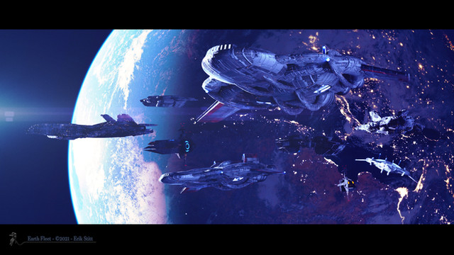 The year is 2344, Humans have colonized the Solar System. The three power brokers in the system are Earth, Mars, and the Ceres Mining Federation. These three players were locked into an arms race and cold war. That all changed when a hostile alien vessel entered the system. The alien battle cruiser was destroyed, but at great cost. Mars, Earth, and Ceres have now banned together to protect the system against alien invasion. A joint armada is on its way to the outer edges of the system to intercept an alien invasion.So this little story is just an excuse for me to put a bunch of different (cool) ships and fighters together.
