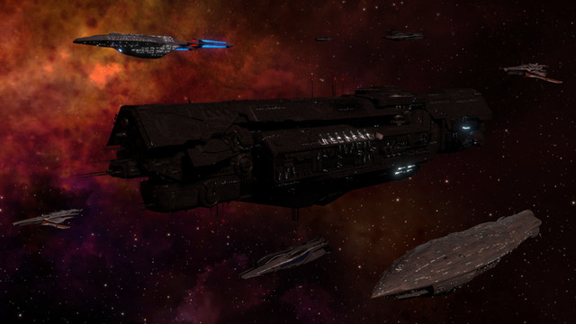 The reinforcements are loaded into drop ships with fighter escort leaving the destroyers hanger bay