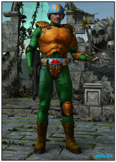 This character is inspired by Shane Goosman from the 80's cartoon,"Adventures of the Galaxy Rangers."