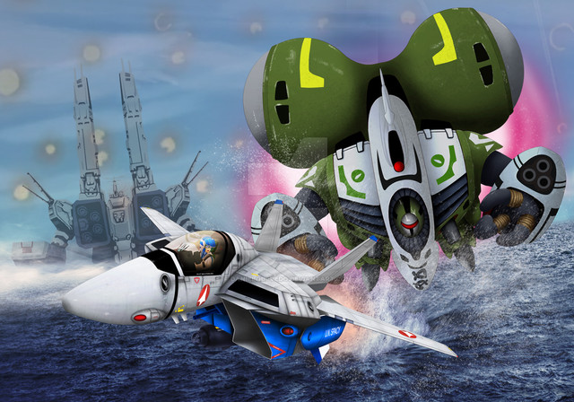 The idea was that this takes place before the launch of the SDF1 and they are training in the new tech. So, some are training in aircraft mode while 2 are trading in the Gerwalk mode. I wanted to show the 2 configurations. It didn’t make sense to me for anyone to be using Battleroid mode out in the ocean.