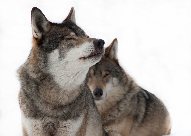 This is Wotan (background) and Wolfgang howling together in unison, completely engaged with the act of communicating with their brethren across the lake. I had to crop in close with this one because one of the staff was in the background watching as well, but these definitely need to be close-cropped to really enjoy the moment.