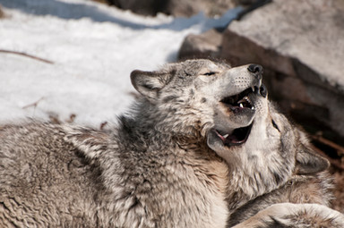 Taken at Wolf Park - Battle Ground, INHearing a wolf howl is a very unique and awe-inspiring thing--listening to the pitch of their voices rise and fall in a gentle chorus with one another as they speak to one another in a language we can only appreciate. When the wolves across the lake began to howl and the wind carried it to us, the main pack began to respond in kind, moving forward to the banks as us humans watched and listened. And then we began to join in as is encouraged by Wolf Park staff. Some of the photographers merely watched and didn\'t howl, some watched and howled, others like me watched, photographed and howled along with them to share a very small bond of wolfship with them that day.
