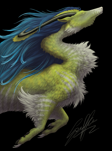 "A gigantic, graceful creature of unknown origin. The Thrumbo is gentle by nature, but extremely dangerous when enraged. While its long fur is exceptionally beautiful, its hide is also incredibly resistant to damage. Its razor-sharp horn fetches a huge price. Legends say that an old thrumbo is the wisest creature in the universe - it simply chooses not to speak."Thrumbos are from Rimworld - which is one of my fave games...