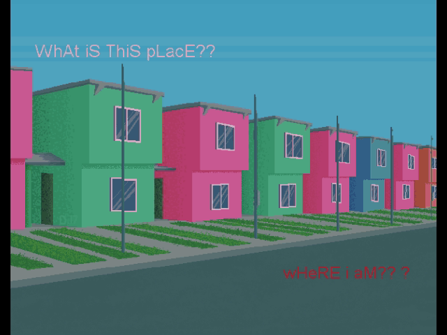 The colors of the buildings may have been inspired by Undertale? Plus, the aesthetic is also inspired by the early 2000s (not by the 80s, although retro-futurism is slightly in affect).