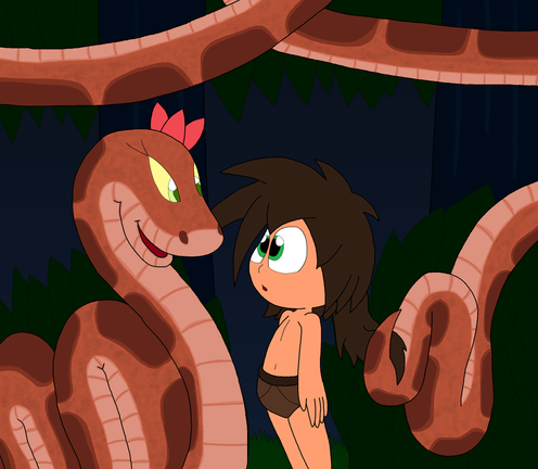 So a while ago, I posted this on a Status Post, a new Kaa styled OC, her name wasn't confirmed until suggested the name, supposedly named after the jungle the original Jungle Book story took place.Design wise, she's adapted from the Snake Phineas concept I had. I basically made an OC version of that to give me more flexibility.