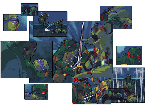 I love this scene because Raphael learns that he has no control of his anger and that it led him to almost hurt Leo, so he learns a lesson. Then in the end he rescues Leo and lets him be the leader. You did a wonderful job!