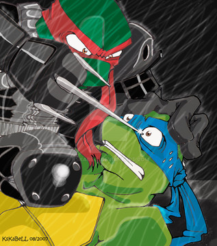This is a scene of TMNT 2007 movie.I shouldn't start to draw this. bucause during the period of drawing this pic, it's almost drive me crazy.XD I told myself never draw this style again.