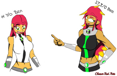I wonder if Ben was stuck being only able turn into alien girls, who would he have besides Starfire. Last tran4of3 picture with Benfire showed him also turn into Gamora, so that leaves 8 more, I guess? (unless Starfire is his default replacing human form)