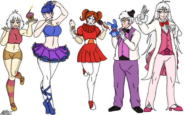 I know, I know... I have a lot of explaining to do.Now, if you clicked this picture, you surely know about the 'Five Nights at Freddy's' Series of Point-and-click Survival horror games (and that one sugar-coated RPG). Also, you might know about 's parody of them called "Five Nights in Anime". Now, what you see here is a sort-of re-invention of sorts; this is me trying to align the Anime incarnations of these suckers with the canon of the Freddiverse.