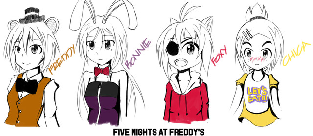 So basically, what I did here was to make a sort-of A.U of Five Nights in Anime which is more faithful to the source material. Now, I know that's pretty much taking shameless fanservice too seriously, but I guess that's just how I is. Now, let's get on with the story.