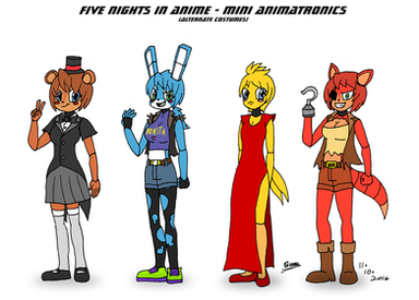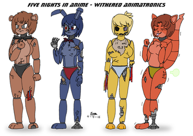 I know, I know... I have a lot of explaining to do.Now, if you clicked this picture, you surely know about the 'Five Nights at Freddy's' Series of Point-and-click Survival horror games (and that one sugar-coated RPG). Also, you might know about 's parody of them called "Five Nights in Anime". Now, what you see here is a sort-of re-invention of sorts; this is me trying to align the Anime incarnations of these suckers with the canon of the Freddiverse.