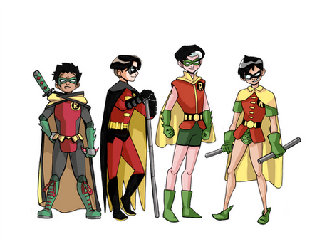 EDIT: Fixed a coloring errorDecided after I drew that picture of Barbara "Batgirl" Gordon, that I needed to do Robins as well. So here we are!