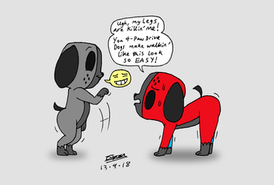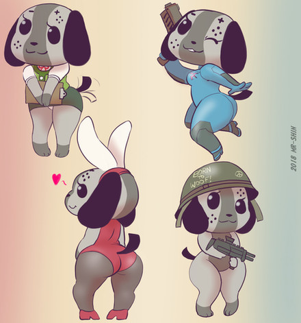 Oh boy, here I go drawing switch-dog bums again.This was an exercise on drawing a few more variations of a switch-dog back-view. Also, I tried to use this as an excuse to retcon an earlier idea of a particular back-pattern being exclusive to one sex or gender.