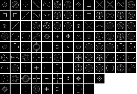 Capriciously created out of nostalgia for old lost ones is this generic set of target crosshair cursors; included are the regular set and a less obstructive but still obstructive (as most cursors of this type are), static set. As the title may hint, they are black and white for visibility; only at the hotspot is the inverse color.Related content