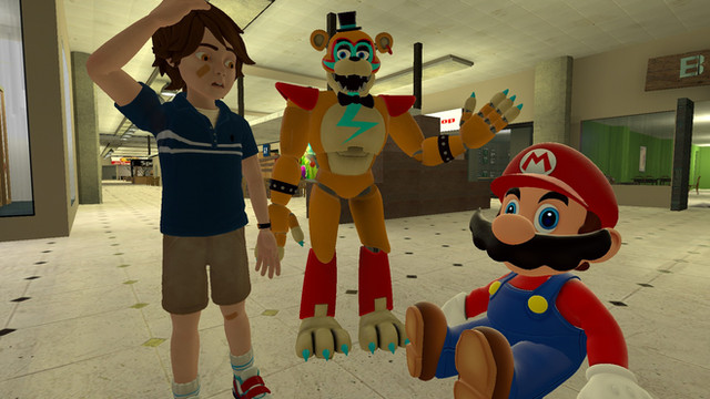 Credit to Map and Model Owners, Google Images- Explanation Point ImageLooks like Gregory decided to let Tails have a go with Glamrock Freddy (with safety precautions on) and he seems to enjoy it.