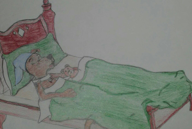Juste une test avec ma tablette graphique, c'est mon personnage Gévaudan le chien / Teckel qui dort.