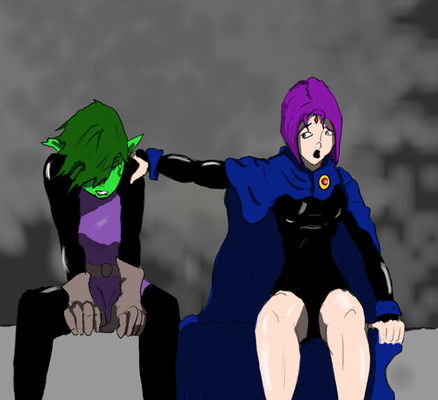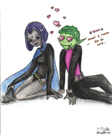 If it helps the commission asked for Raven when she's in the white outfit and has long hair like in the episodes with her demon daddy. And Beast boy is supposed to be looking more at Raven even though I failed at that. And I hate how I colored this becuase of my emptying markers.TT^TT