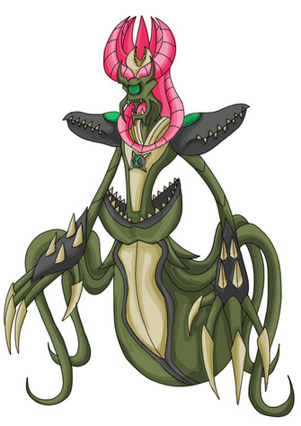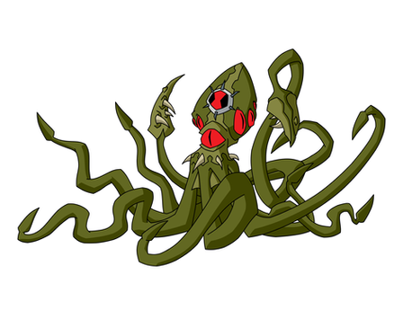 Appearance: Geneseed is a kaiju sized green tree like alien with various thick root appendages, three in front and four at the back. She also has two extra appendages that end with mouths made of hardened wood and red thorns just near the mouths. Her face consists of four banana/leaf like flaps that cover wooden beak and she has slit pupils and inverted eyes. The Omnitrix symbol is located on her chest.