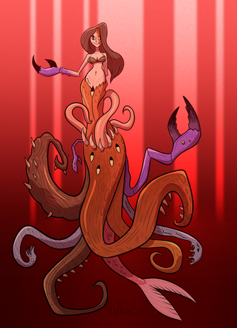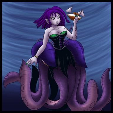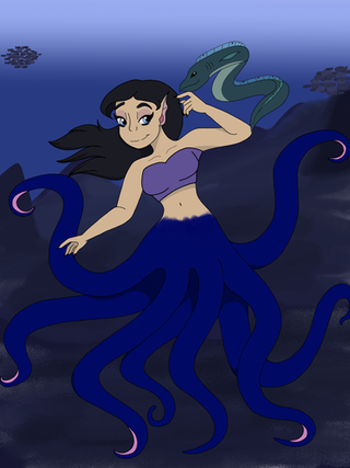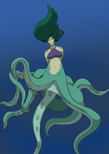 Basically Rubberband Girl as a Mermaid like being, but being like Ursula with Cephalopod limbs rather than the tail of a fish or a cetacean. And she shaped the tips of seven of her tentacles for combat, as you can see.Related content