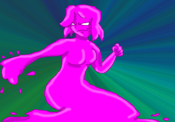 Now here we have Rebecca doing one of her pranks onto Anna and Alex. Hiding as nothing more than a small pink liquid in a glass test tube. Anna checked the test tube and remembered that it didn't have anything in it the last time she was in the lab, and then it bubbled and grew until it almost covered both Anna, Alex the whole room in her slimy body.Related content