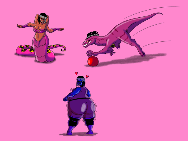 And here we have a giant elastic dragon scaly flattening an elastic woman with her arse.Here is the original drawing for this idea. sta.sh/0izgz7j0fk7
