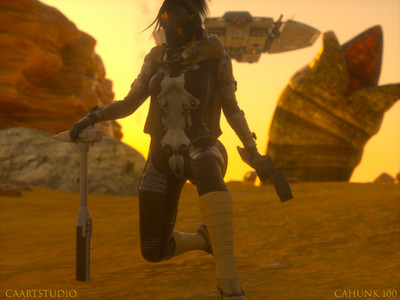 I've still not really taken Luxus for a spin yet. When I first got it I loaded up a new character I've been working on(not posted anything with her yet) and did a basic 'scantily clad girl with infinity wall' render. It came out looking not to bad, but boy did the hair look terrible! No spec highlights to it all! I was just using the standard kind of settings I would use for DAZ which told me I need to get my hands dirt and set some Luxus materials for the likes of hair. Ofcourse though the problem with anything Lux Render based is the render times. It's hard to just sit and do quick fire tests like I can in DAZ, but it is something I want to start using for renders things like Dune renders to help beef them up a little. If only it was GPU based like Octane...or if only Octane didn't cost so damned much, hahaha.
