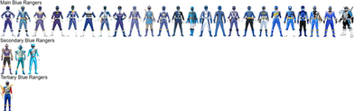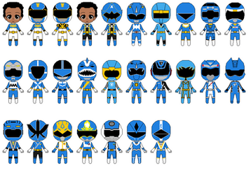 Here is yet another Power Ranger tribute, this time, of Blue Rangers. This also includes the Ninja Storm, Navy Thunder Ranger, the Jungle Fury Shark Spirit Ranger, and my fan made Pokéball Blue Ranger. Can anyone guess which color I'm going to do next?Update: Added the new Dino Charge Blue Ranger.