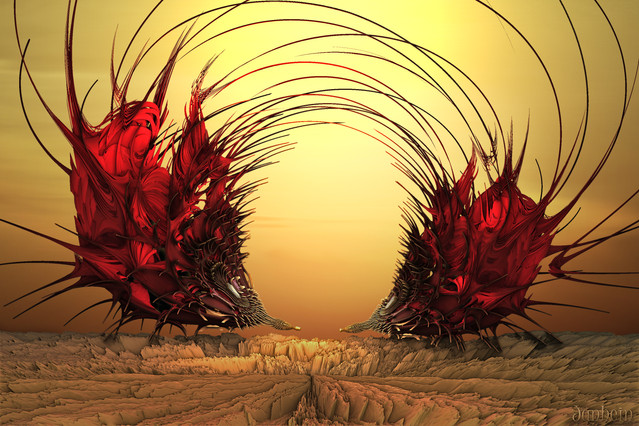 This reminded me of a close up of a moth's wings. The name was inspired by the album title of one of my favorite groups: [link]Rendered in Apo 2.08 beta with some light post processing to enhance the texture and contrast.