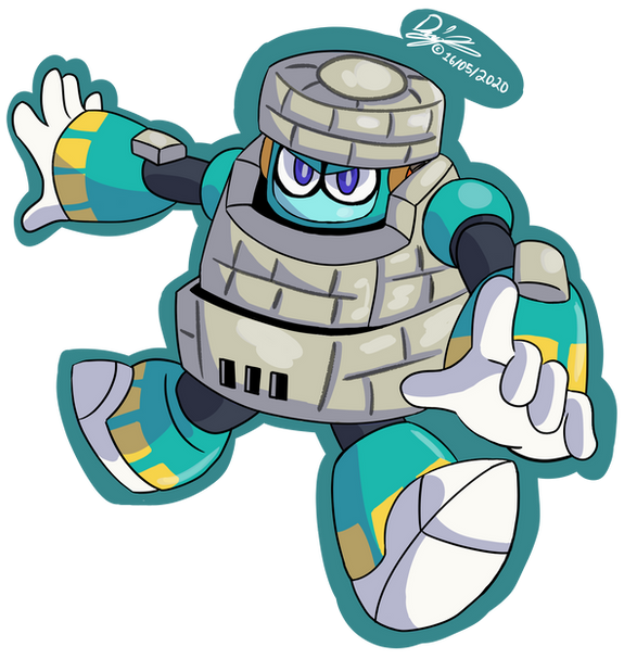 Trying to get back to my little project of drawing all of the Megaman robot masters, so, from Megaman 11 here's Block Man!
