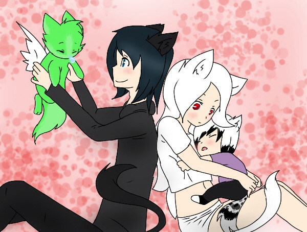 Dark: *giggles and pulls both closer* Im sure kit is like Night and Light together~
