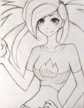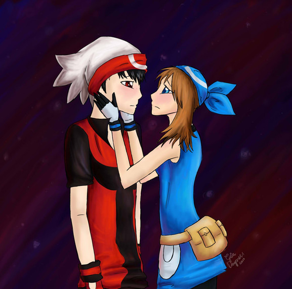point commission for Lawman09 of a LuckyShipping fanart drawing(trainer red and blue from pokemon)