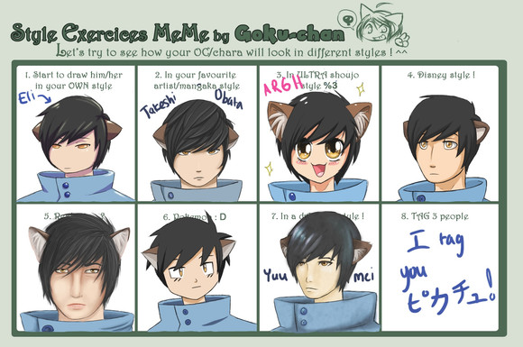 I was tagged by Jupiter1. I don't really have a style. I have quite a few |D This is my "I don't feel like looking at a reference" style.
