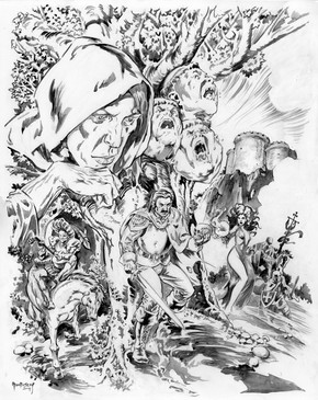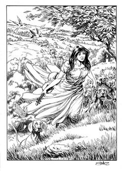 I was cleaning up my desktop today for the first time in, oh, ever. Came across a bunch of stuff that I wouldn't want to post on its own but is kinda cool enough for me to put in the effort. Here are a couple of inks that didn't quite pass muster, but have interesting bits and pieces.First and third weren't for a class: selkie and then Margaret and William from Hazards of Love, second was from an assignment where I was given three random words and had to make an illustration: Wizard, Crowded, Enigma. This is about 1/3 of the image, the other 2/3 had the enigma, and were also terribly boring.