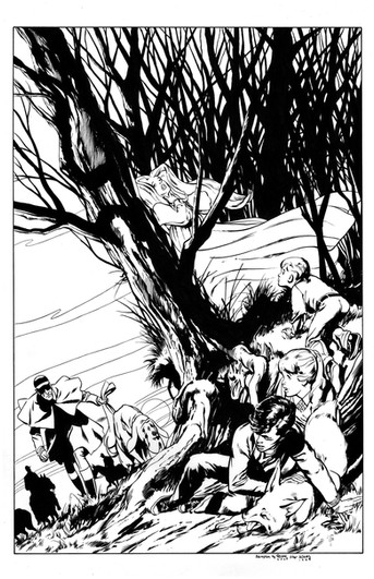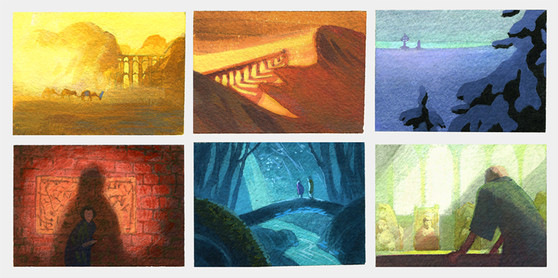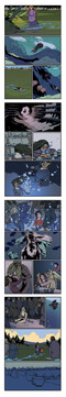 Everything about the first and last panels is great. They read right away and their tonal balance is precisely awesome. The second panel with the crows took me a bit to figure out what was happening. The crows push back a lot into the background. the scholar fellow is hiding.