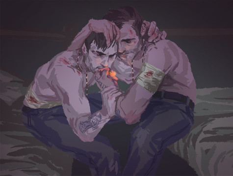 p.s. is that the wrong leg? Whatever, it's psychosomatic anyway haha. As you can tell from his hair, I obviously flipped this in photoshop- the narrative is so much stronger this way.