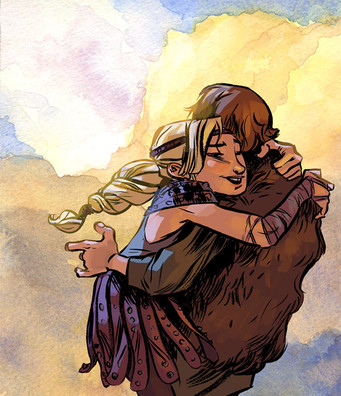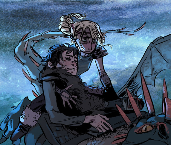 Woo! Beautiful inspiration for my story! That's a very nice picture you've drawn. I absolutely love the emotions portrayed between the two of them, as it just makes one want to cry out of joy that Hiccup's alright and that Astrid's there with him. Cute kids in love.