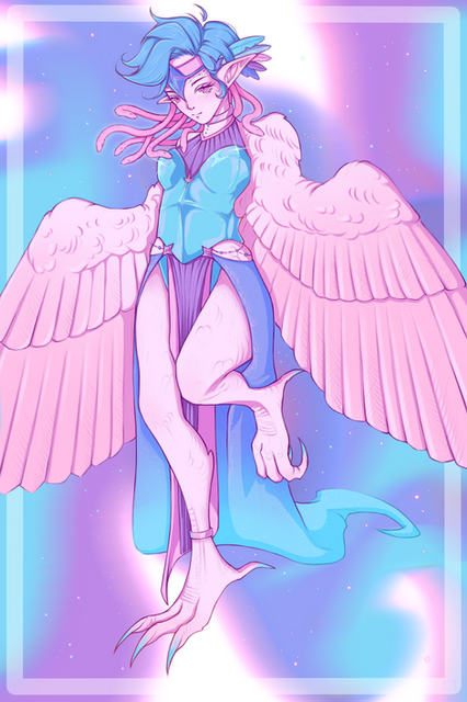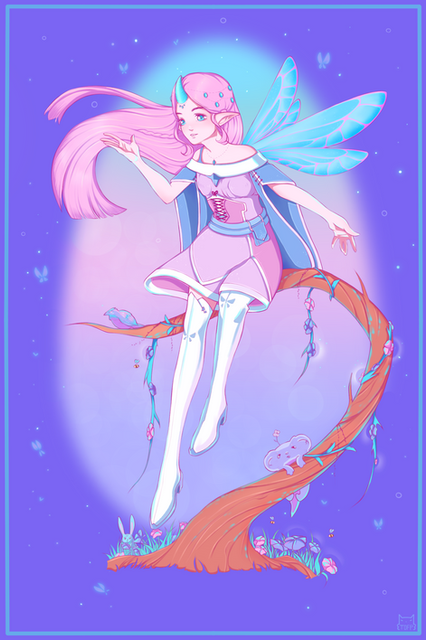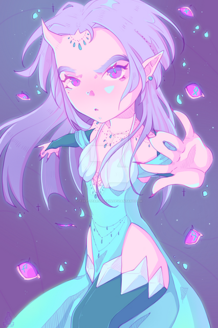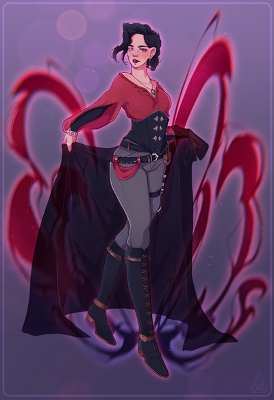 We created this character together with my subscribers on the VK group! I conducted polls with answer options, where the guys chose: dark elf + vampire, hair with multi-colored strands, clothes of the 18-19th century, purple-green palette and an extra element: tail (which I forgot about....)
