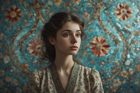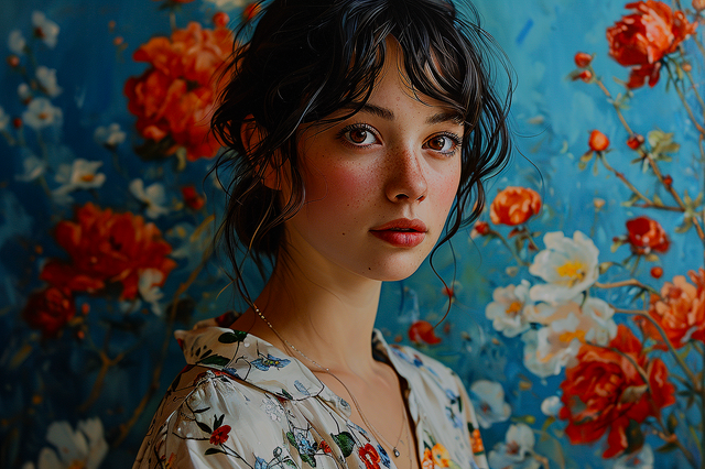 Most of my work starts (and often finishes) in MidJourney, but I rarely take a straight MJ output as a finished piece. Most often I individually prompt multiple components, blend them, image prompt, re-prompt, re-mix, then make some minor tweaks to end up with what I had in mind. I had a clear vision of this woman and the botanical wallpaper for this.Related content