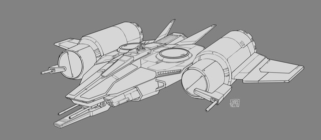 When I was designing this I based it on the F-4 Phantom both in terms of looks and ability. It was a fun project and well outside my normal art as I don't normally do a ton of mechanical art.